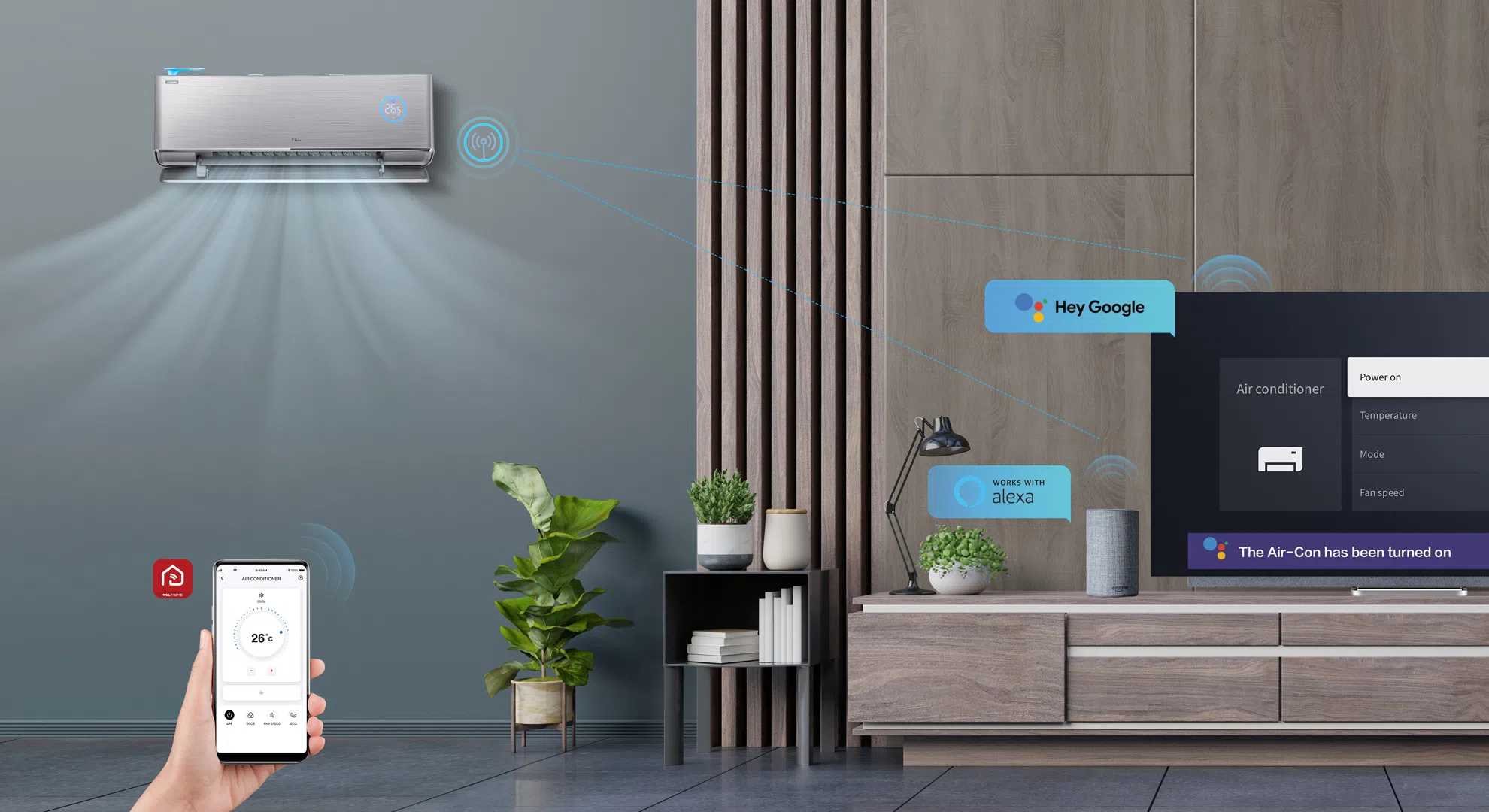 Control the temperature in your home anytime and anywhere via the TCL Home app or through simple voice commands*.