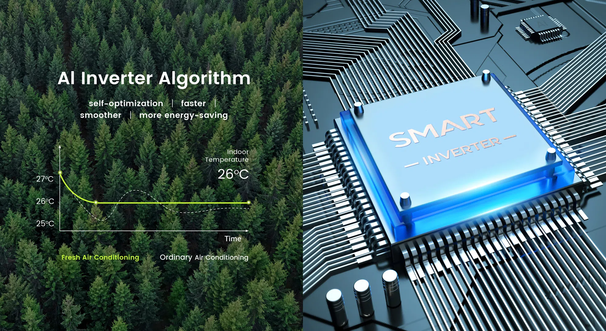 With the patented design of the liftable fresh-air inlet, your TCL air conditioner shows you when fresh air enters the room and directs the fresh air through the upper panel. Temp. CompensationAfter the fresh air is drawn into the interior through the heat exchanger, it is cooled or heated and re